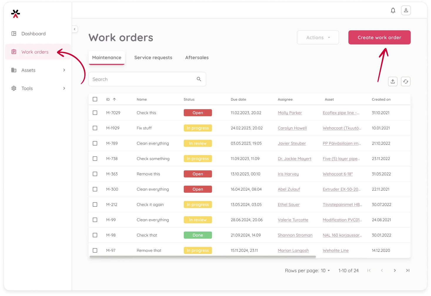- Click the Create work order button in the top-right corner of the page.