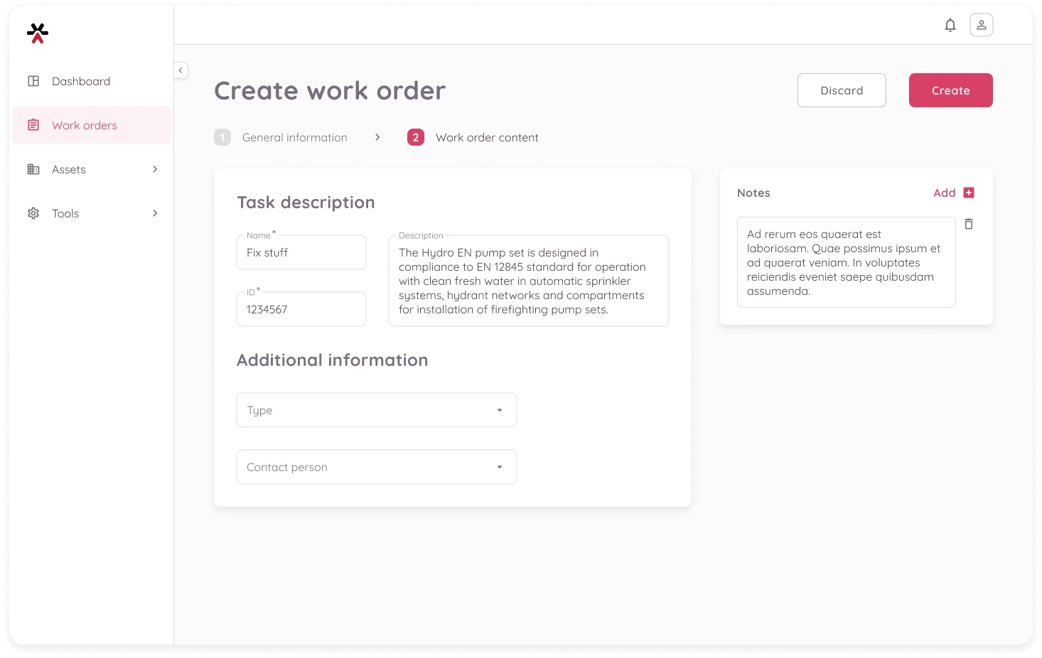 - (Optional) Add any notes relevant to the work order. You can do it later as well.