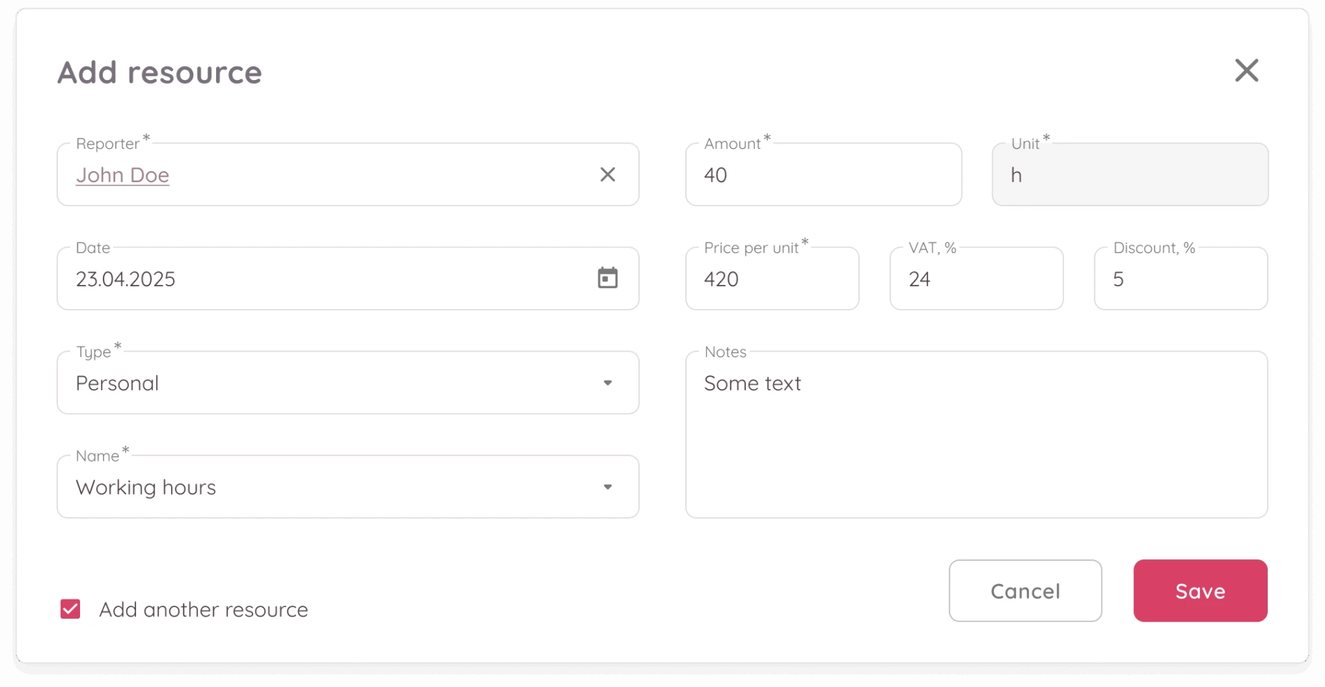 - (Optional) To continue adding more resources immediately, tick the Add another resource checkbox in the bottom left corner.