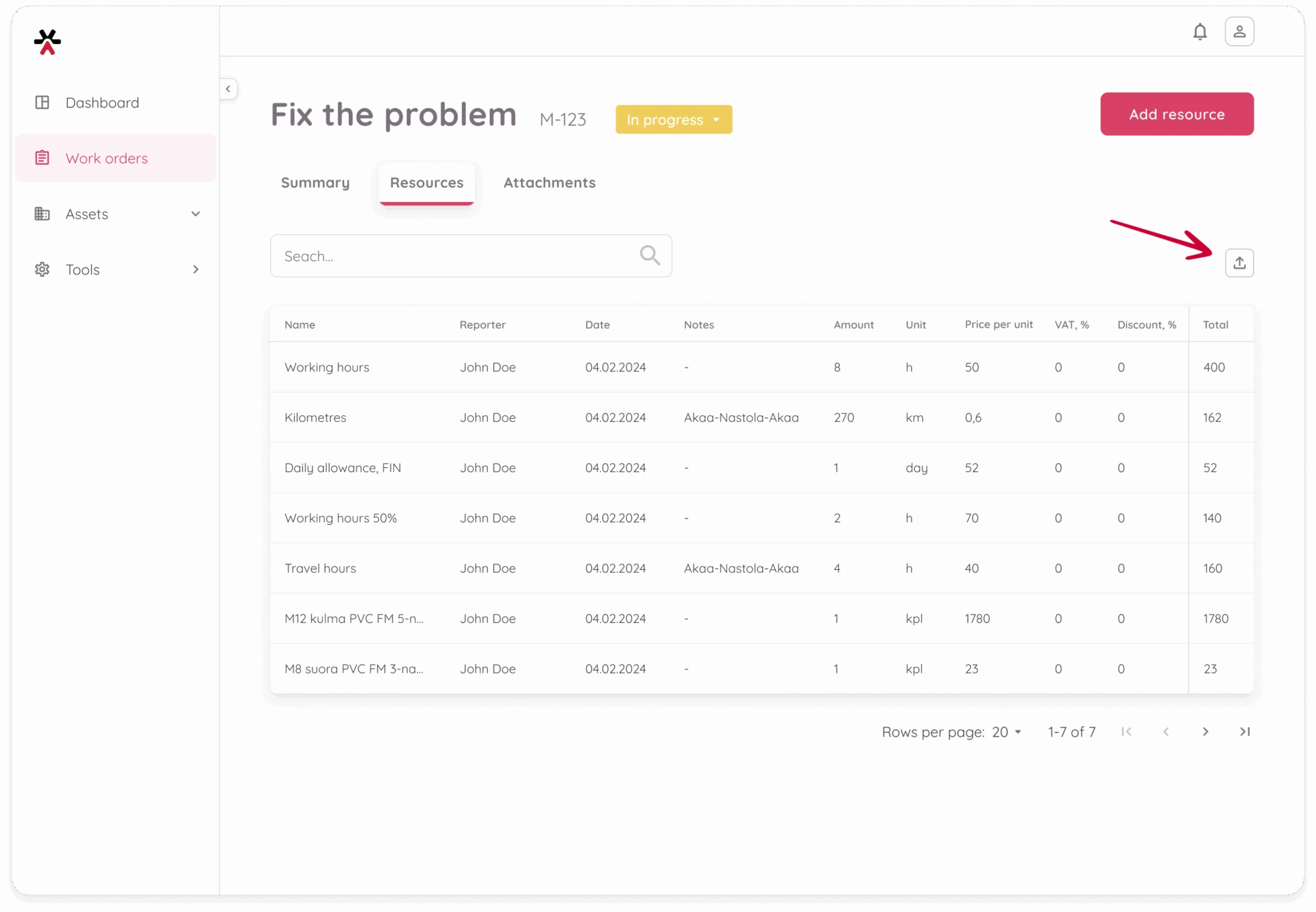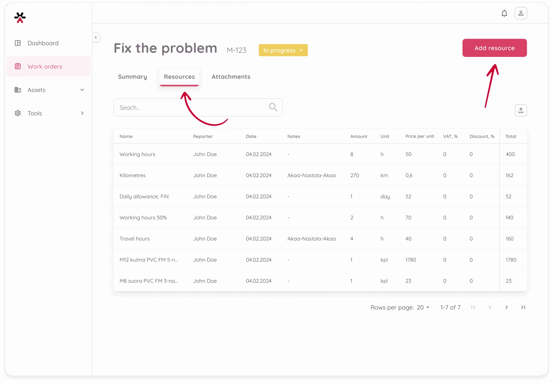 Resources allow you to track costs related to labor, materials, or services used to complete a work order.